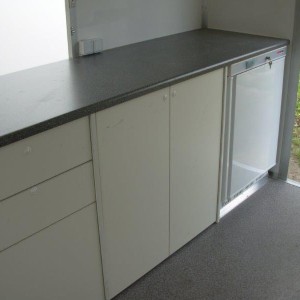 - zabudowa drewnopodobna tylna z blatem,