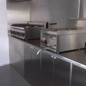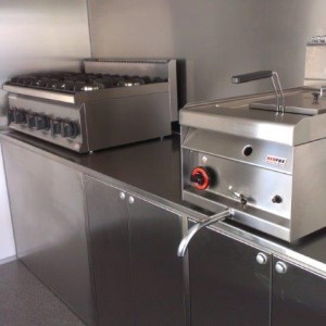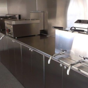 • zabudowa nierdzewna przednia otwarta z blatem i szufladą na pieniądze,