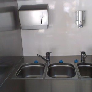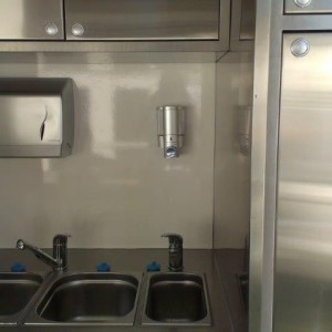 • moduł sanitarny z szafą odzieżową (3 zlewy,2 baterie, 2 zbiorniki x 30L,podgrzewacz wody)