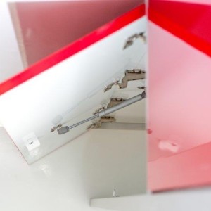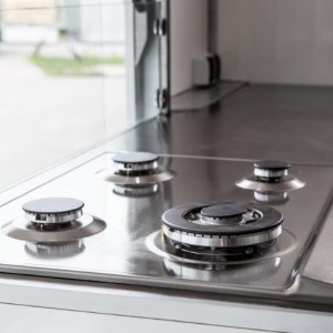 - zabudowa meblowa Linia Ultra Light czerwona zamknięta z blatem pokrytym nierdzewką